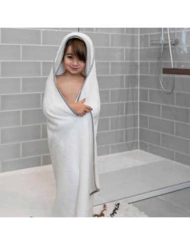 La mantellina è realizzata in spesso cotone biologico per garantire il massimo assorbimento.