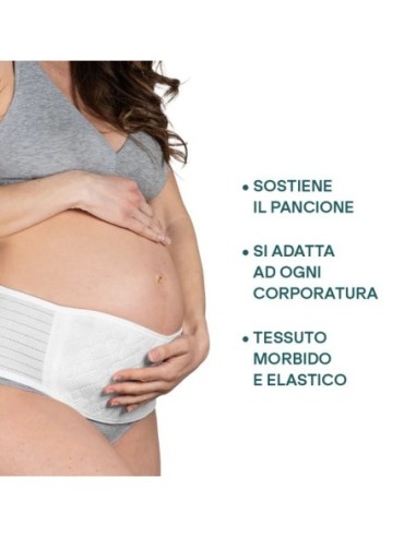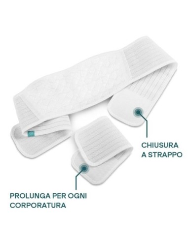 È regolabile per adattarsi ad ogni corporatura e per seguirti fino alla fine della gravidanza. È dotata di una fascia extra che si può aggiungere alla principale grazie a una semplice chiusura a velcro.
