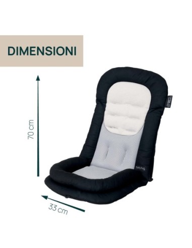 Può essere utilizzato in diverse posizioni e con o senza cuscino e imbottiture aggiuntive per seguire la crescita del bambino.