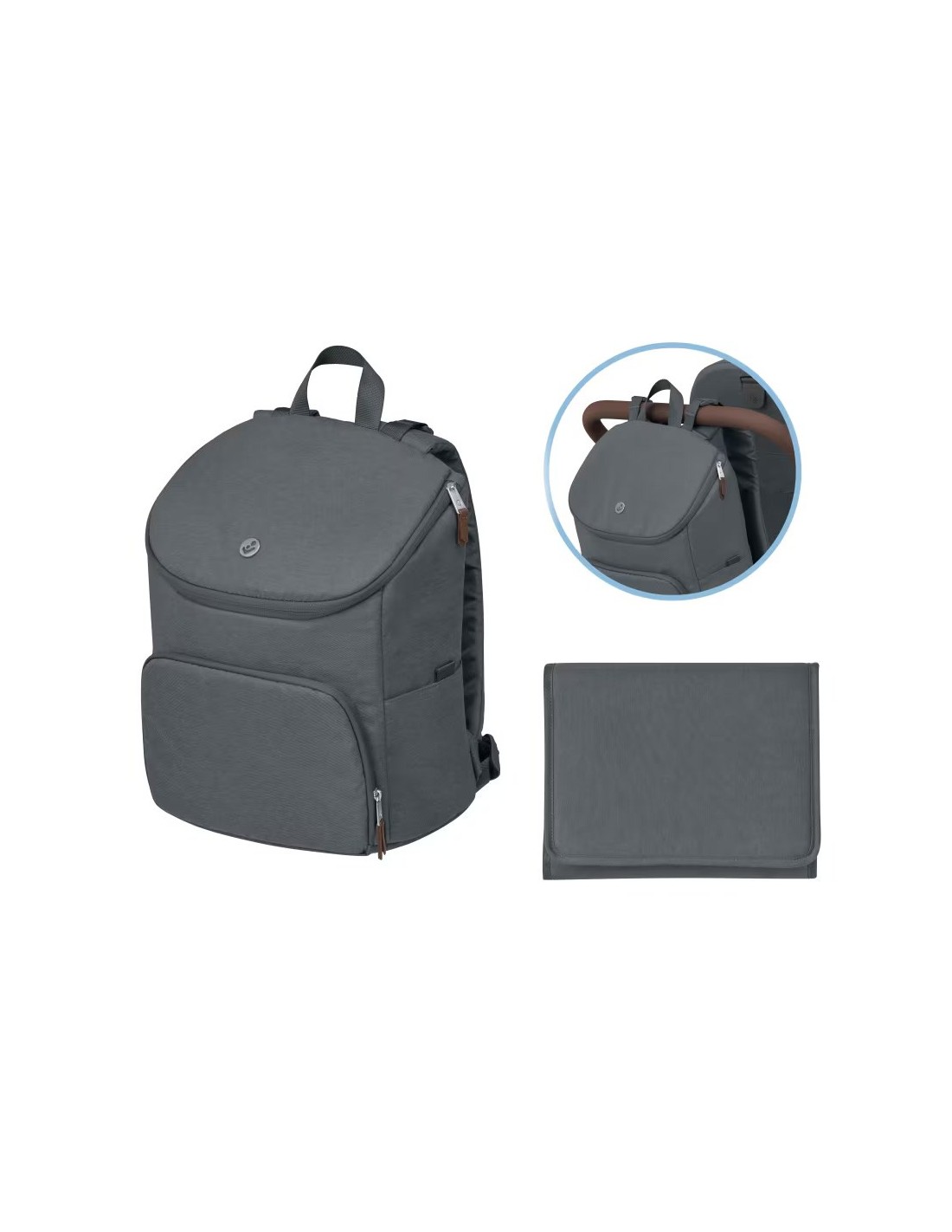 Grazie alle capienti tasche e al materassino fasciatoio, lo zaino è perfetto per il cambio pannolino fuori casa. Utilizza le pratiche cinghie per il trasporto oppure aggancialo al maniglione del passeggino.