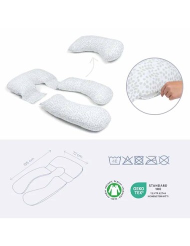 Questo cuscino premaman in evoluzione vi accompagnerà anche dopo la gravidanza. Una volta che il bambino è a casa, il cuscino XXL può essere utilizzato come cuscino per l'allattamento, soprattutto grazie al piccolo cuscino rimovibile. Potrete posizionarvi comodamente con il vostro bambino durante i pasti.