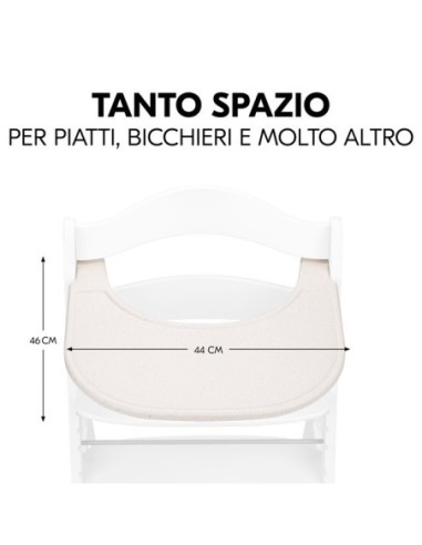 Il bambino siede in sicurezza sul seggiolone con vassoio, poiché dotato di cintura inguinale e a 5 punti. La sua ampia superficie offre molto spazio per piccoli giocattoli, piatti e bicchieri. In salotto, in cameretta, in cucina o in bagno: con il seggiolone Alpha+ il bimbo siederà sempre alla vostra stessa altezza. Il bambino può utilizzare la sedia in base alle sue esigenze. Combinate il vassoio con il riduttore e cuscino di seduta per offrire al bambino maggior comfort.