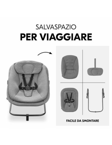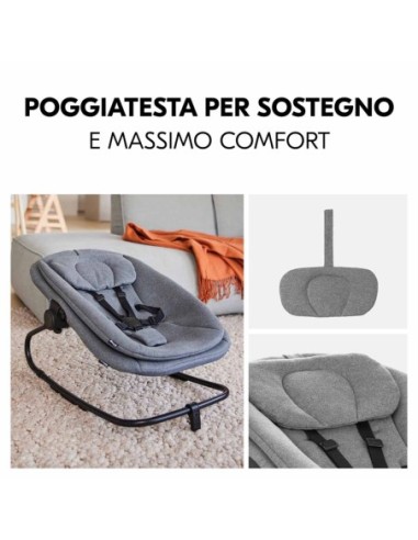 Le sdraiette favoriscono lo sviluppo! Il tuo bambino allena l'equilibrio e la motricità. Con il Highchair Bouncer può dondolarsi, oscillare e rilassarsi, fino a 15 kg come sdraietta, fino a 9 kg come accessorio per seggiolone.