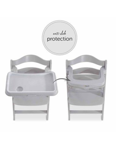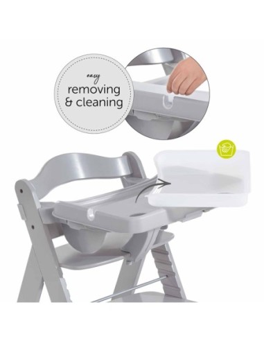 L’Alpha Tray è perfettamente compatibile con la cintura a 5 punti hauck, mantenendo il tuo bimbo al sicuro mentre ti godi un pasto tranquillo.
