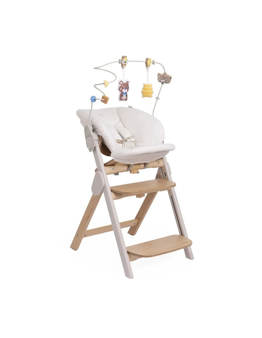 Progettato per essere montato con facilità sulla sedia evolutiva Meraviglia, si fissa senza difficoltà allo schienale senza interferire con la seduta o la pappa, diventando subito parte integrante dell’esperienza quotidiana.