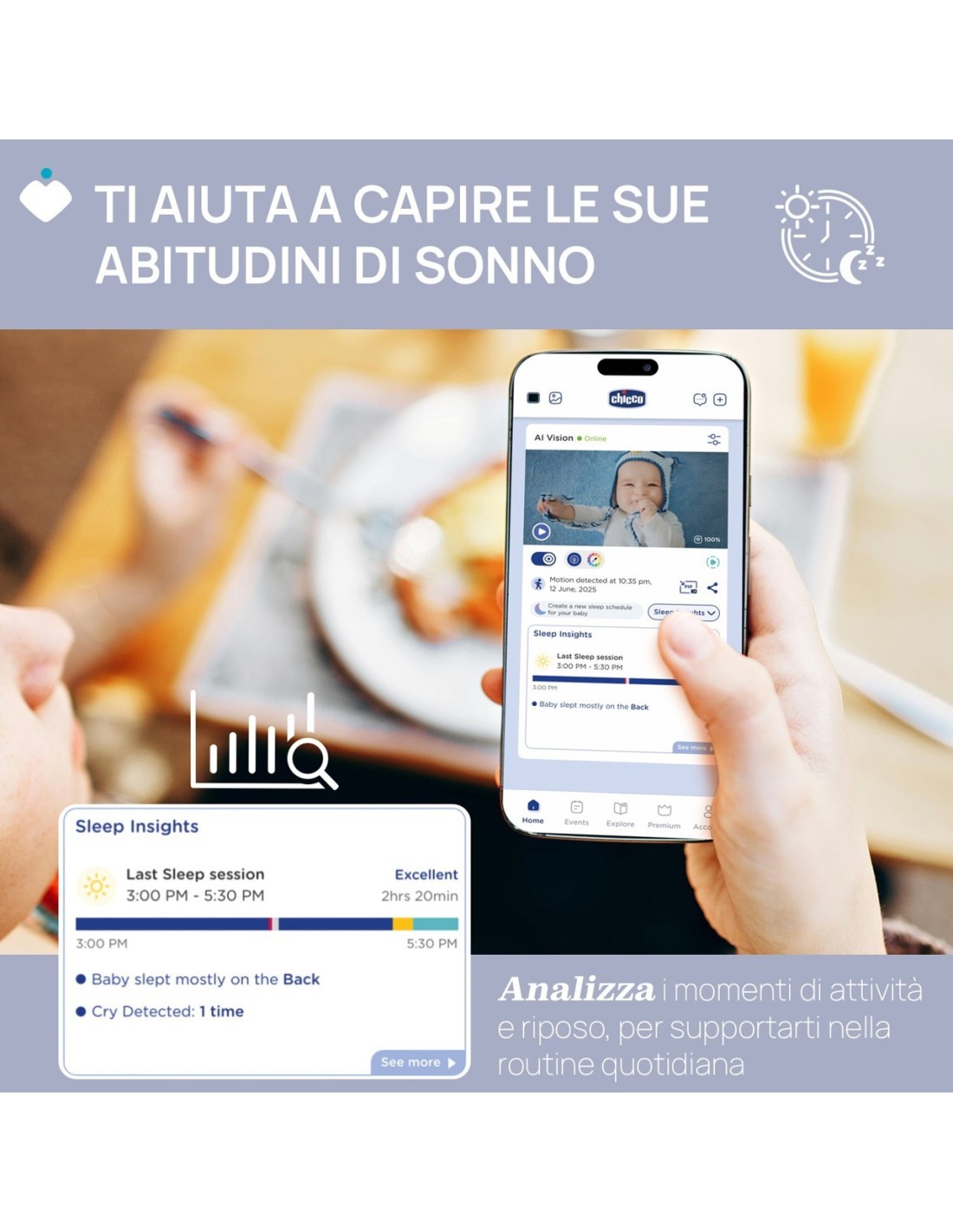 Le funzioni di monitoraggio intelligenti offrono utili indicazioni per aiutarti a comprendere i bisogni del tuo bambino, ovunque tu sia.