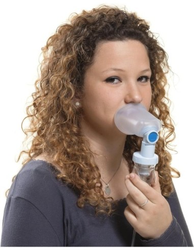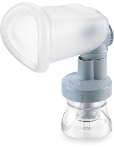 Nebula Spacer ampolla nebulizzatrice con maschera buccale volumetrica per le vie aeree inferiori dove garantisce il deposito bronchiale del farmaco nebulizzato. Produce particelle con dimensione da 1 a 5 mcm, che raggiungono anche le parti estreme quali alveoli polmonari e bronchiali.