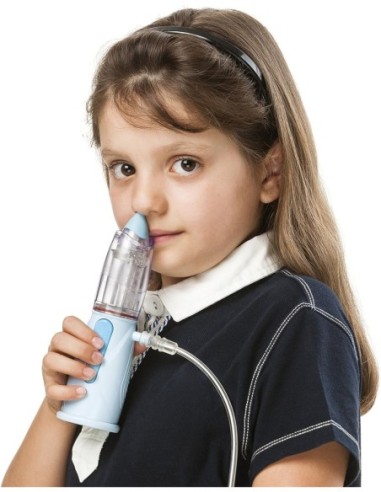 Rinowash terminale per il lavaggio e il trattamento delle vie aeree superiori produce particelle con diametro pari a 18 mcm che si depositano nella cavita nasale fino al rinofaringe per il trattamento di riniti, rinosinusiti e infezioni dell'albero respiratorio superiore.