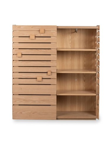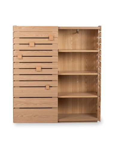 Con sei spaziosi ripiani e un'asta per abiti incorporata, la cassapanca in frassino naturale offre un ampio spazio per vestiti, giocattoli e altri oggetti essenziali. Il suo design accurato consente di utilizzarla come guardaroba o come contenitore, adattandosi alle esigenze del bambino che cresce. Che si tratti di organizzare i vestiti o di riordinare i giocattoli, questa cassapanca offre il perfetto equilibrio tra praticità ed eleganza.