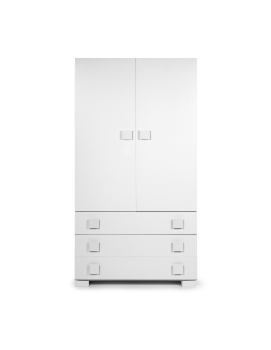 La parte superiore dell’armadio offre generosi spazi per appendere abiti, mentre i tre cassetti inferiori sono ideali per riporre giochi, biancheria o altri oggetti essenziali. Realizzato con materiali di alta qualità e finiture sicure, questo armadio è pensato per durare nel tempo.