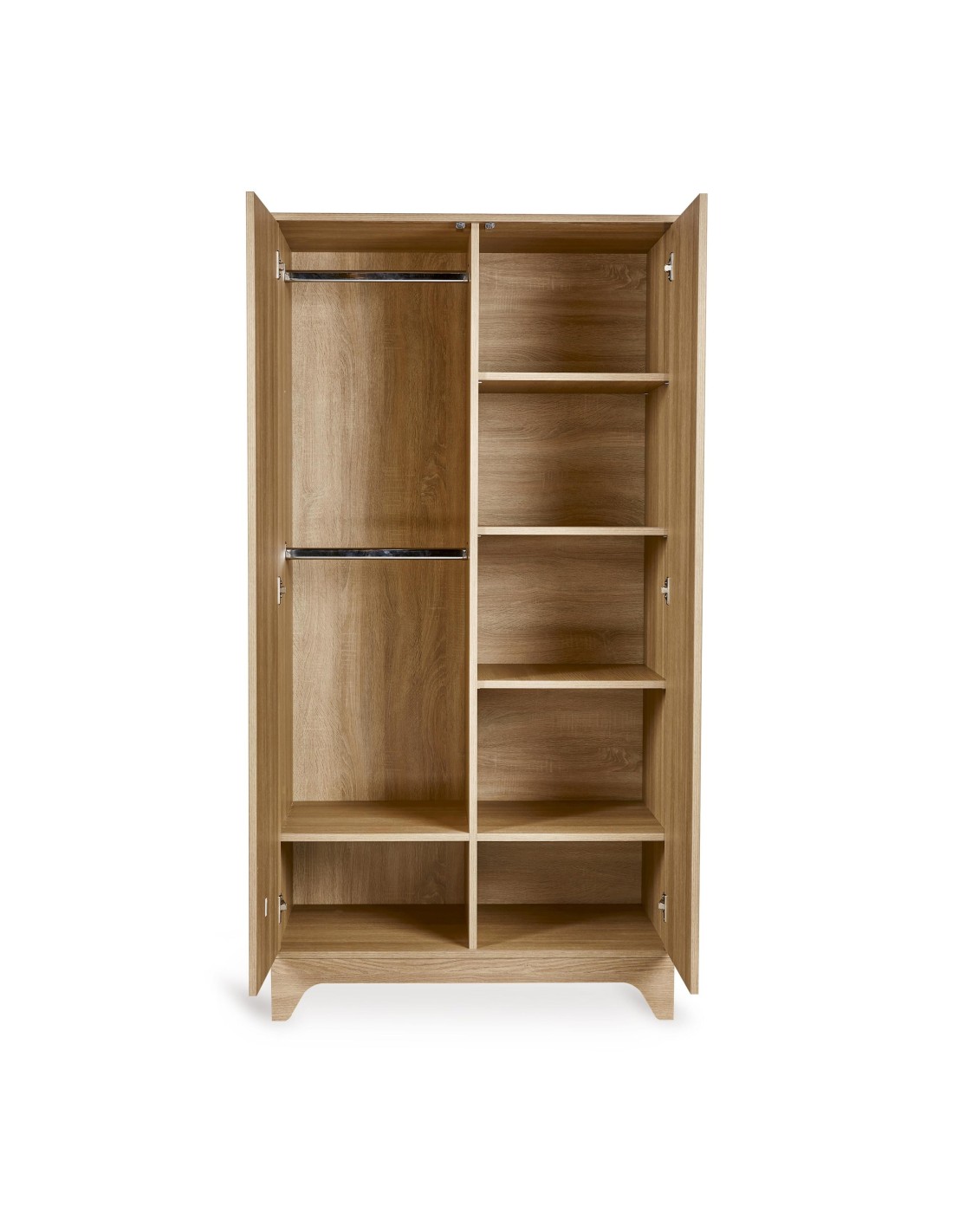 All'interno, tre ripiani regolabili e due aste appendiabiti offrono lo spazio ideale per riporre abiti e accessori.