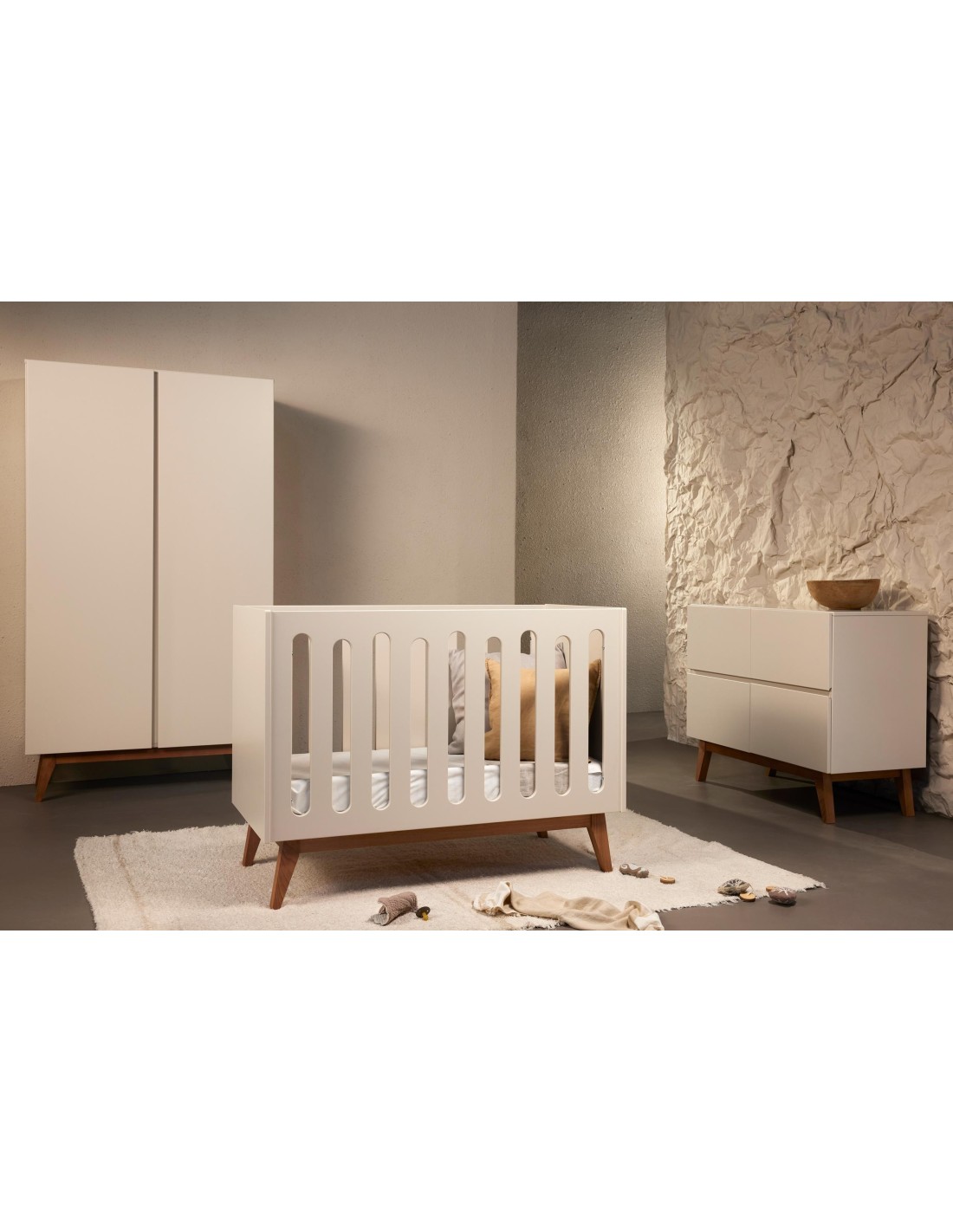- Finitura: sistema a base d'acqua applicato in 3 strati, testato secondo la norma EN 71-3 per il primer e la vernice di finitura.