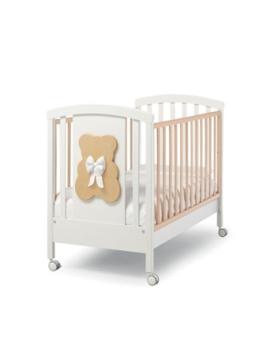 Il lettino Dudù è realizzato in legno massello di faggio, con sponde regolabili in altezza e un ampio e comodo cassetto. É caratterizzato da 4 ruote piroettanti con gomma antitraccia, di cui due con freno. É dotato di un' applicazione a forma di orsetto con fiocco, ed è disponibile in quattro diversi colori: bianco tortora, bianco grigio, tortora sbiancato e grigio sbiancato. Il design e la produzione sono Made in Italy.