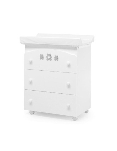 L’elegante bagnetto fasciatoio Erbesi, dotato di tre spaziosi cassetti per riporre tutto ciò che vuoi, è l’ideale per la cura e l’igiene del bimbo grazie alla vaschetta per il bagnetto anatomica antiscivolo e per merito delle cerniere per il top anticaduta per tenere il tuo bambino nella sicurezza completa; la struttura è realizzata in truciolare certificato classe E1 a bassa emissione di formaldeide, e rivestita in PVC facilmente lavabile.