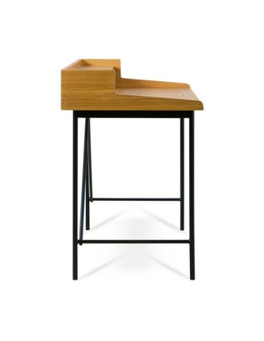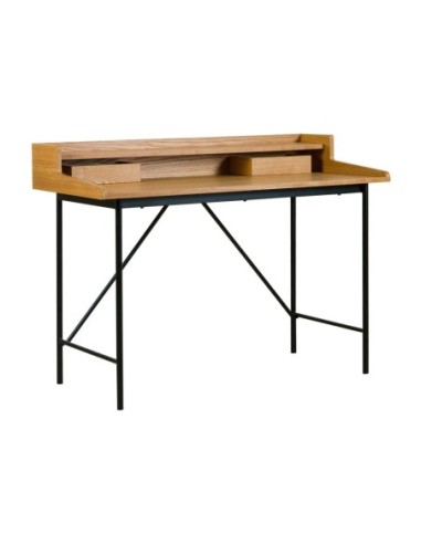 Con la sua struttura in acciaio nero e il piano in legno MDF con rivestimento in frassino, questa scrivania offre un bellissimo equilibrio tra design moderno e calore naturale.