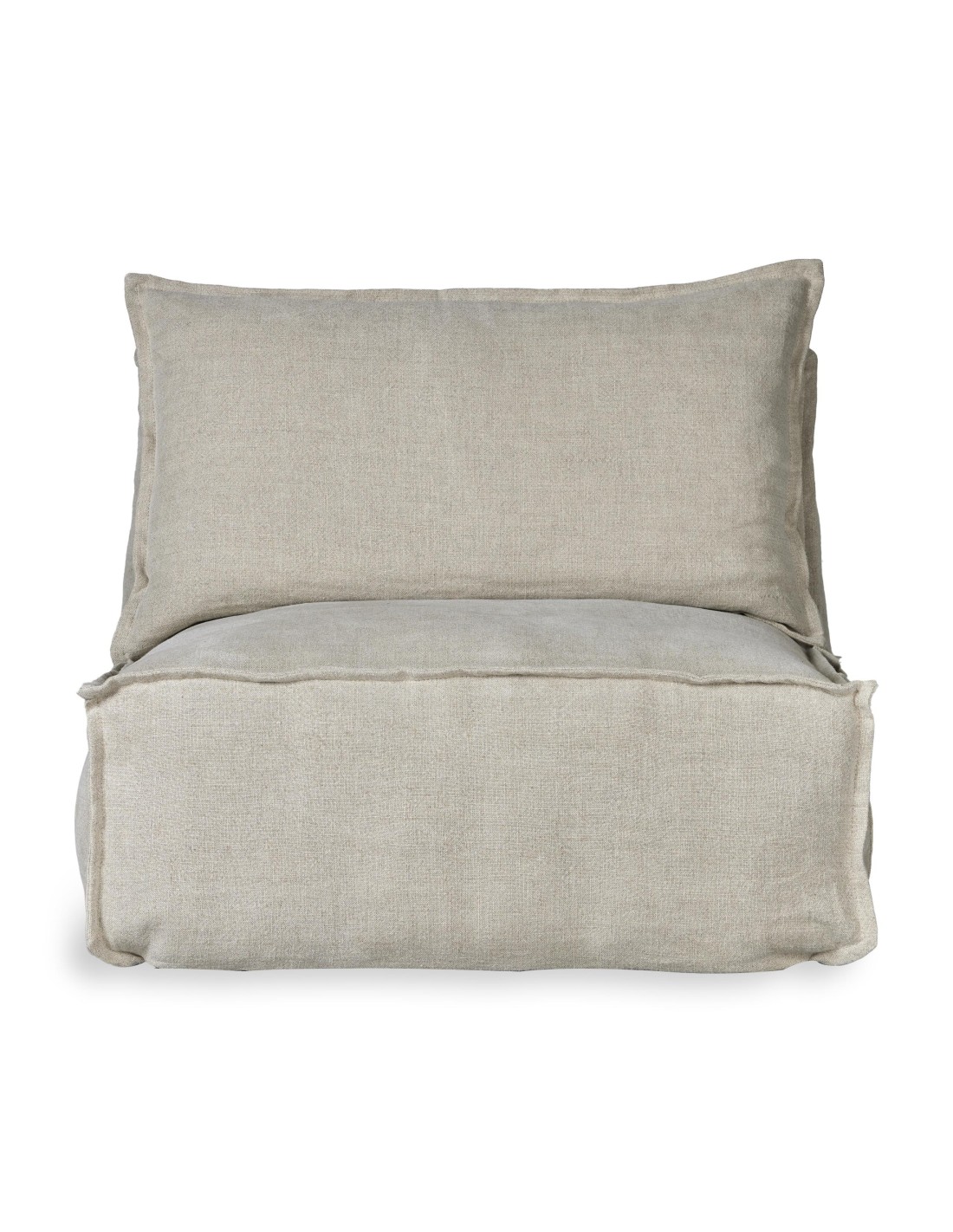 La Linen Lounger è una poltrona dalle forme generose, interamente rivestita in morbido lino traspirante. Con il suo profilo basso e il cuscino oversize incluso, emana calma e raffinatezza: perfetta per chi apprezza sia il comfort che lo stile.