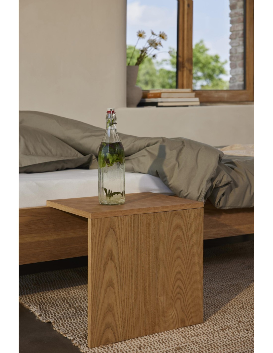 Realizzato in MDF impiallacciato in frassino, il comodino si integra perfettamente con il design intramontabile della collezione Hai No Ki.