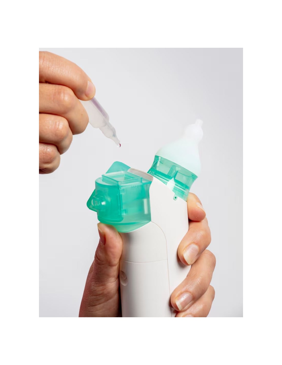 Sciogli il muco con una leggera nebulizzazione, quindi rimuovilo con una delicata aspirazione: due passaggi essenziali per liberare e pulire il naso del bambino, il tutto in un unico dispositivo intelligente.