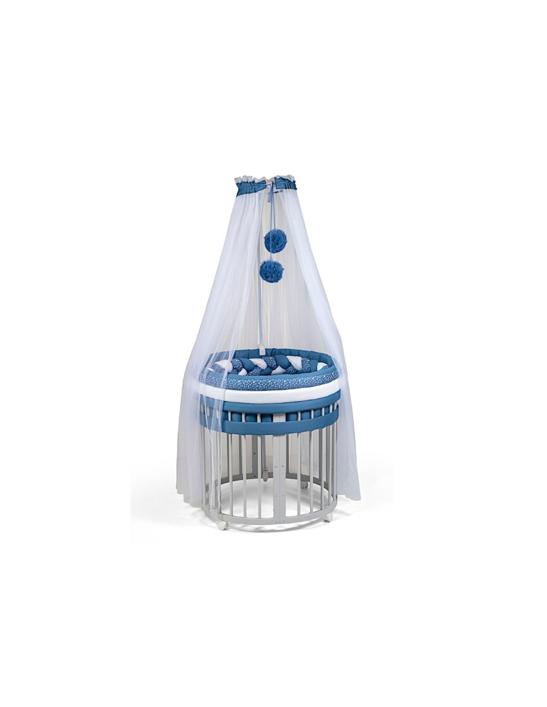 Lettino evolutivo che può essere montato come culla tonda “mini”, per un utilizzo durante i primi mesi di vita del bambino. Può essere poi trasformato in lettino ovale, di misura standard, con l’aggiunta di due pannelli laterali in dotazione, ed inoltre, può essere utilizzato come box, lettino montessoriano o comode poltroncine.