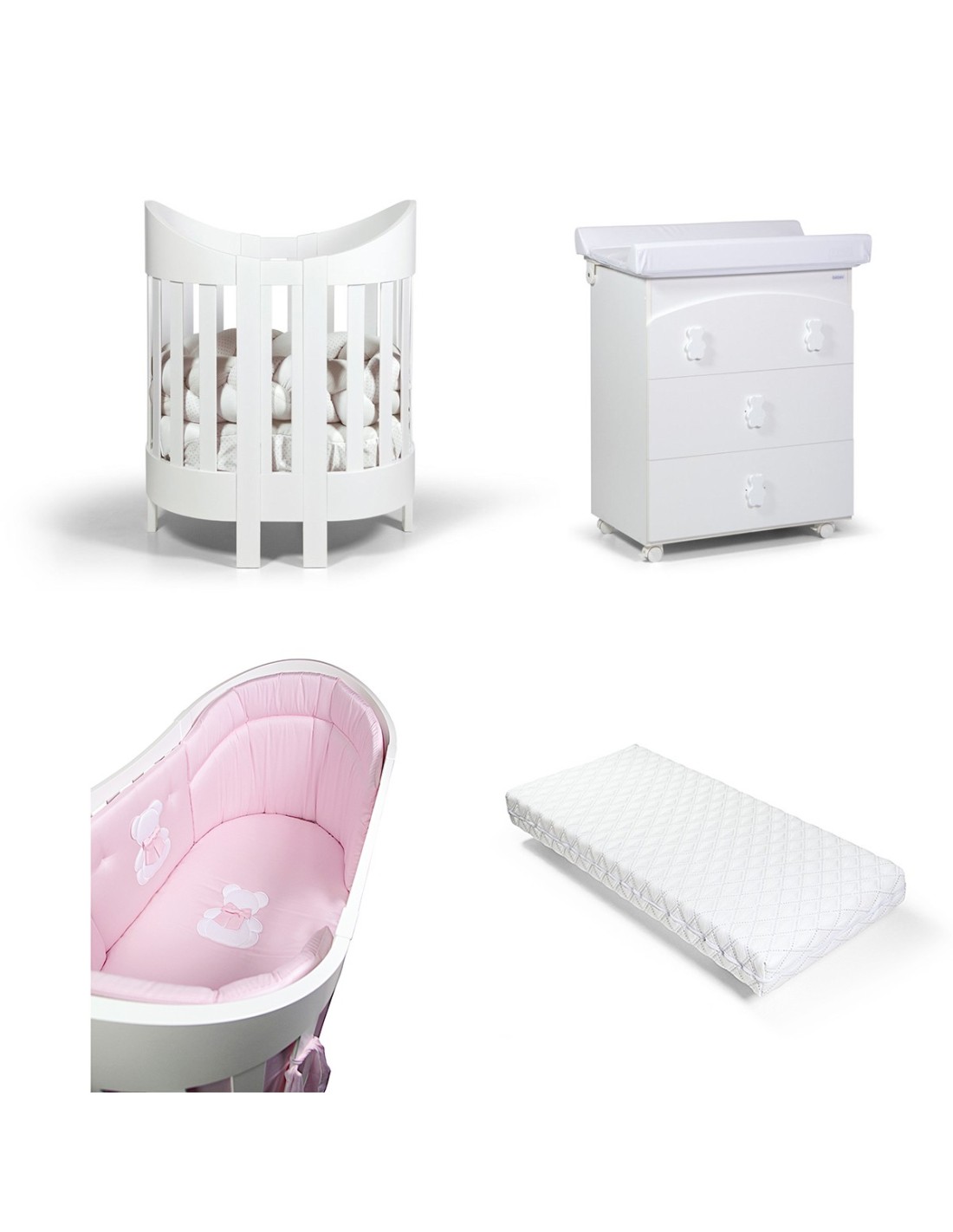 Kit di Bebex per la cameretta Meggie che comprende il lettino, il bagnetto, il piumone e il materasso.