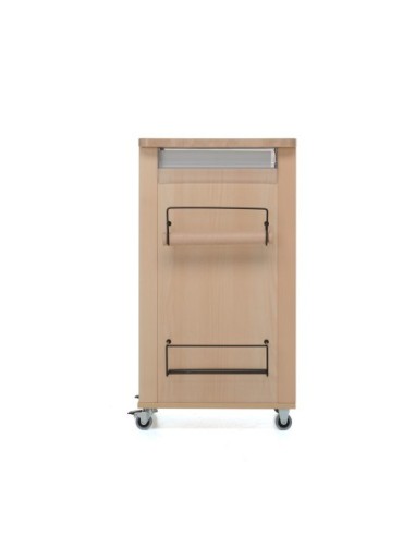 Sul piano di lavoro può essere appoggiato il pratico tagliere in legno in dotazione. Tra gli accessori anche due pratici portarotoli, un portabottiglie e un portarotolo per carta casa.