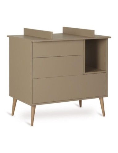 I cassetti senza maniglie si aprono con una leggera spinta grazie al sistema push. Il comò può essere personalizzato con nicchie di diversi colori per creare un look unico (art. 54F01-05-0X). Inoltre, è disponibile un'estensione opzionale che trasforma il comò in un pratico fasciatoio (art. 54F01-05-0X).