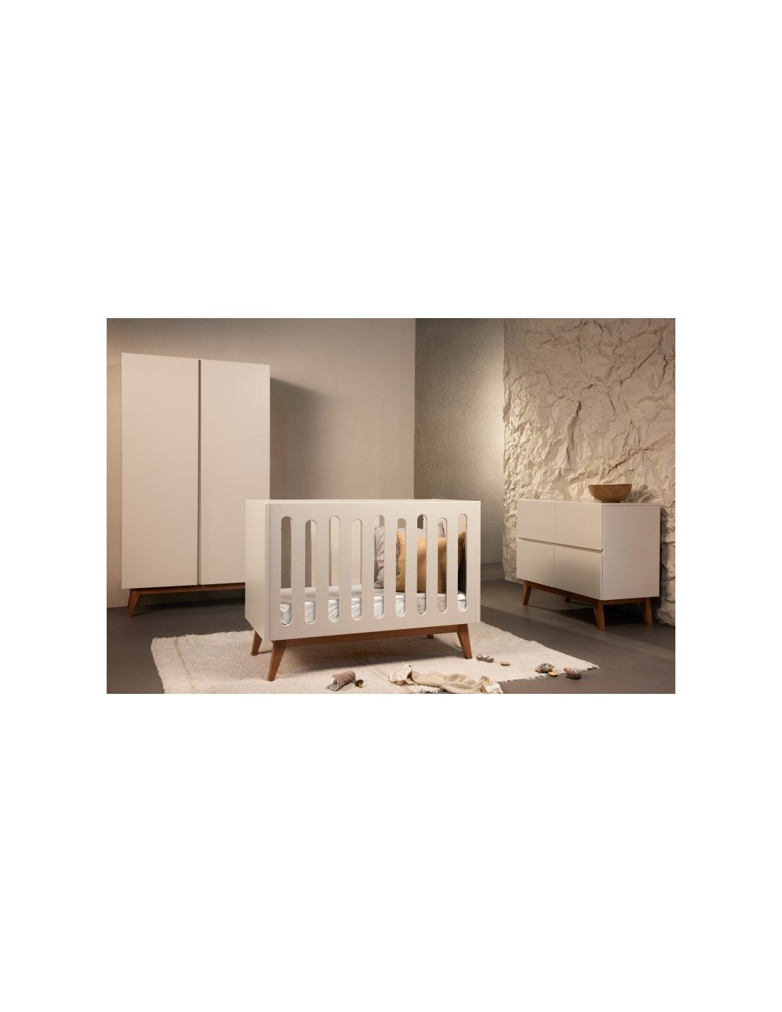 Il suo design sobrio e chiaro la rende una stanza mista che si evolverà con l'età e i gusti del bambino nel corso degli anni.