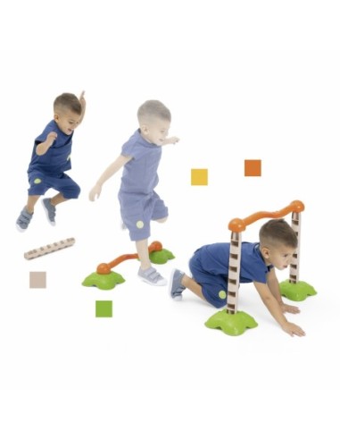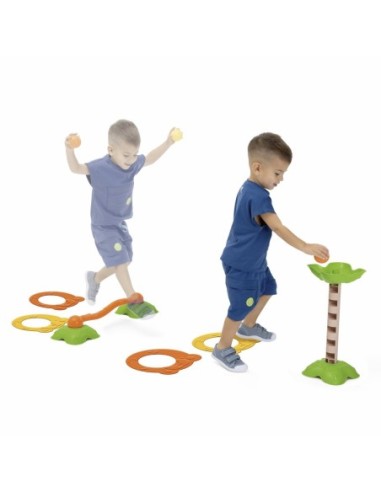 18 pezzi inclusi: 4 basi, 4 elementi verticali, 4 anelli, 4 sfere in plastica morbida, 2 elementi orizzontali