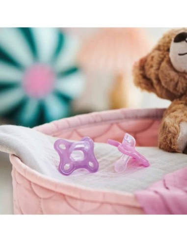 Estremamente leggero: più leggero del 32%² rispetto ad altri ciucci monopezzo in silicone, il bambino riesce a tenerlo in bocca senza alcuno sforzo