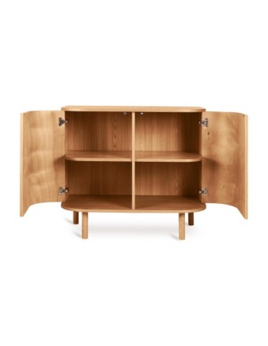 Le gambe sono in legno massiccio di frassino, mentre le ante sono realizzate in MDF con rivestimento in frassino, per garantire una struttura resistente e raffinata.