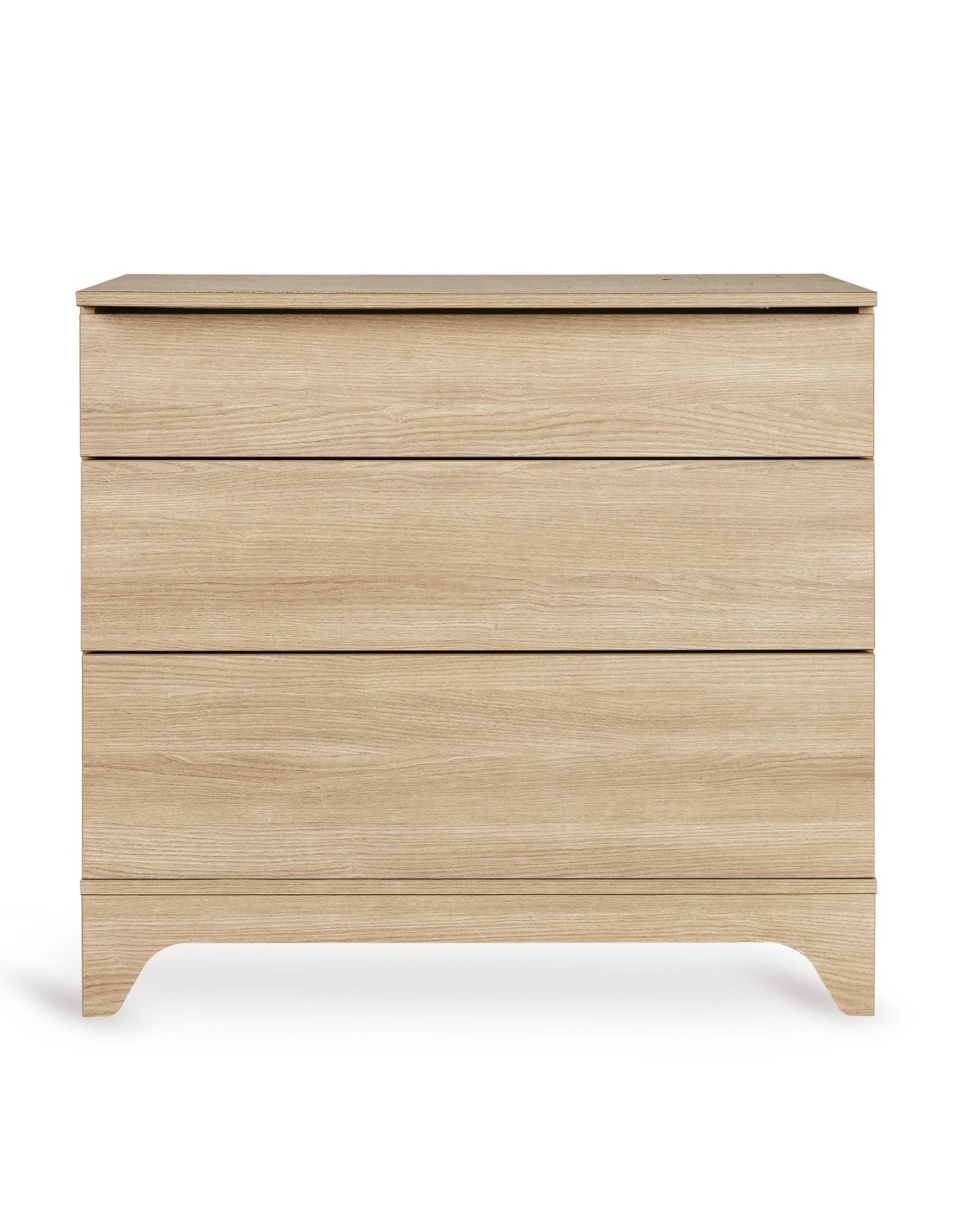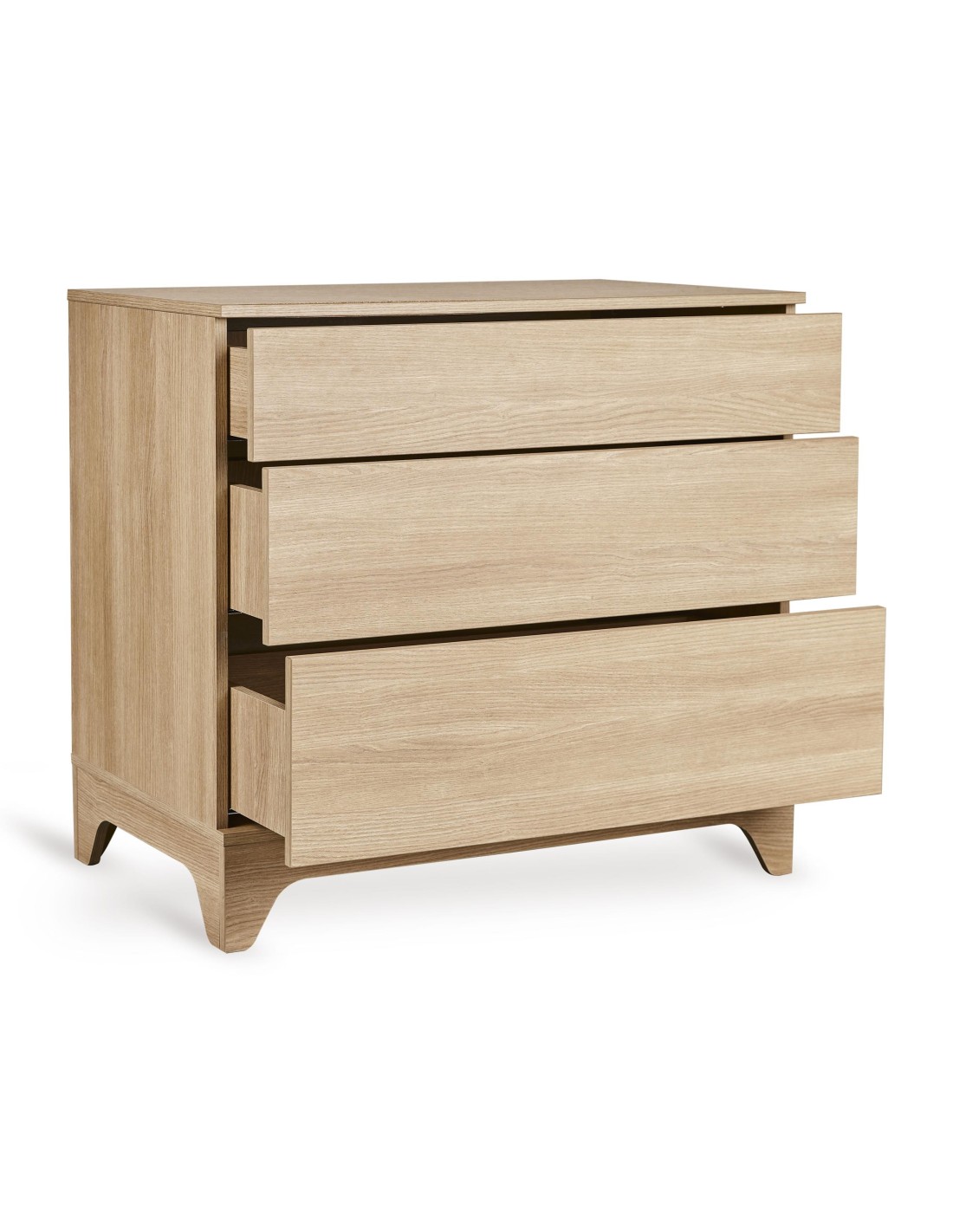 I tre cassetti senza maniglie si aprono agevolmente grazie a un sistema a pressione, offrendo ampio spazio per riporre tutti gli articoli essenziali per la cura del bambino.