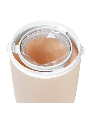 Il coperchio del contenitore per pannolini presenta una speciale curvatura interna che è stata pensata per smaltire i pannolini sporchi. Evita la formazione di vuoti d'aria, così i cattivi odori non potranno fuoriuscire. Inoltre, grazie alla pratica impugnatura puoi aprire e chiudere il coperchio senza difficoltà anche quando hai le mani occupate. Anche il formato è decisamente comodo e non avrai di sicuro problemi a trovargli il giusto spazio in casa.