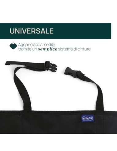 Universale: si fissa al sedile con un semplice sistema di cinture