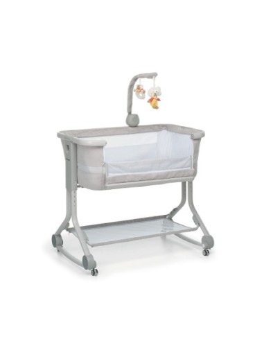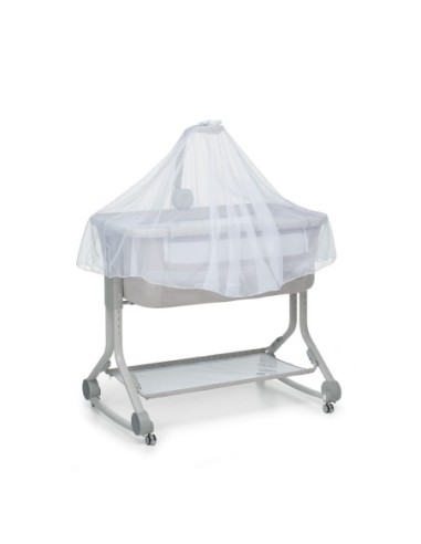 La culla ha un fianco apribile per consentire la modalità co-sleeping ed è regolabile in altezza in 6 posizioni indipendenti, adattabili anche per la funzione anti-reflusso. La struttura in alluminio è leggera e facile da spostare, grazie alle 4 ruote gommate e piroettanti con freno: ruotando le ruote di 180°, la culla si trasforma in modalità dondolo. La cura dei dettagli è massima per garantire il miglior comfort al neonato: la parte interna ha tessuto morbido al tatto e aerazione naturale per un miglior ricircolo d’aria. Ampio ripiano portaoggetti e materassino incluso.