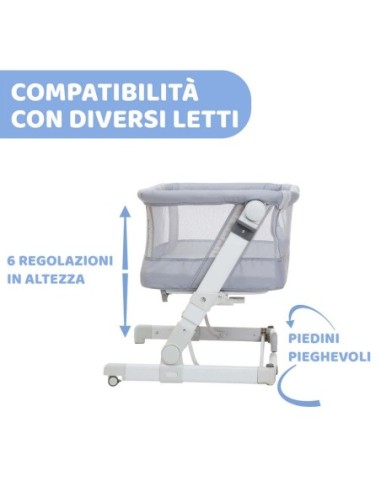 Altezza regolabile e piedini pieghevoli, per adattarsi a diversi tipi di letto.