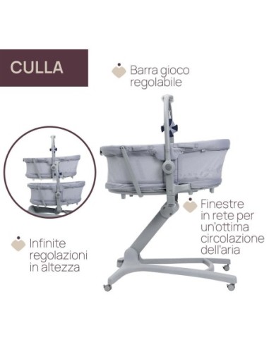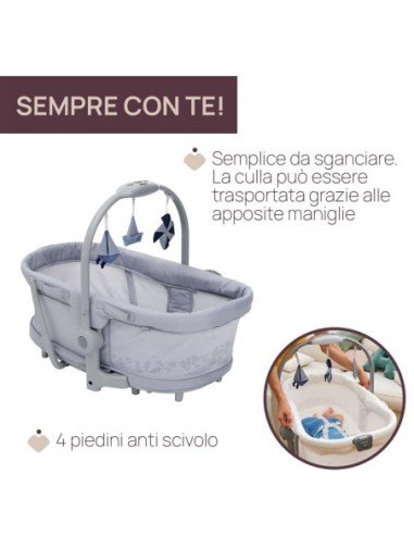 Culla portatile, staccabile dalla struttura, è la soluzione perfetta anche in una casa a due piani. Culla (0-6 mesi).