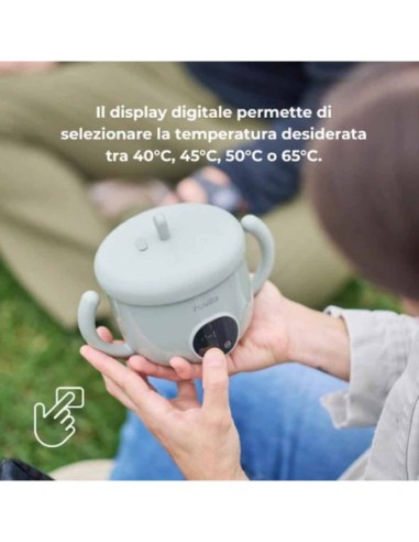 Lo scaldavivande elettrico portatile Pappa'n'Go va oltre il semplice riscaldamento: la funzione Smart permette infatti di impostare la temperatura desiderata tra 40°C, 45°C, 50°C, 65°C assicurando che il cibo raggiunga e mantenga la temperatura scelta.