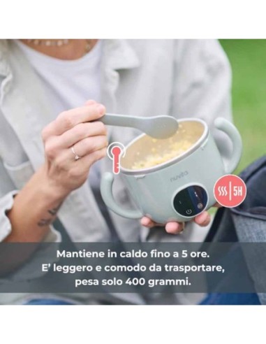 Lo scaldapappa portatile di Nuvita è leggero e comodo da trasportare, pesa solo 400 grammi ed ha una capacità di 470 ml.