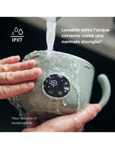 Lo scaldapappa di Nuvita è completamente impermeabile e può essere lavato sotto l’acqua corrente come una normale stoviglia.
