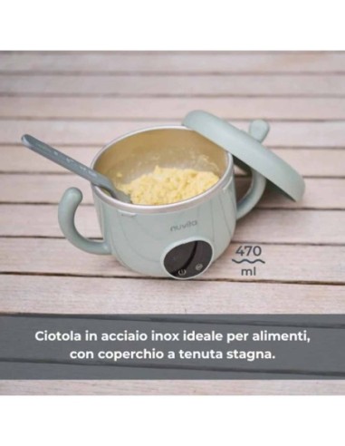 Oltre ad un'ampia autonomia di utilizzo, lo scaldapappa elettrico di Nuvita si distingue per la sua praticità: l’interno in acciaio inox permette, infatti, una distribuzione uniforme del calore ed il coperchio a tenuta stagna evita perdite di liquidi e gocciolamenti.