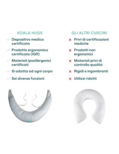 Koala Hugs è il cuscino gravidanza e allattamento multifunzione che ti accompagnerà prima e dopo il parto.