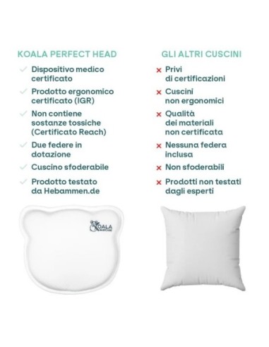 Con Koala Perfect Head sei sicuro che la testa del tuo bimbo è in buone mani: non è solo un cuscino per neonati, ma un dispositivo medico certificato per aiutare a prevenire la testa piatta nel neonato o a trattarla se già presente.