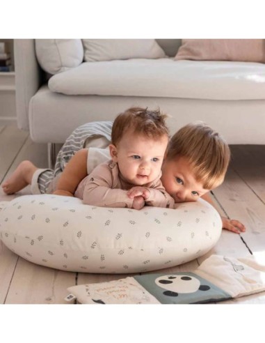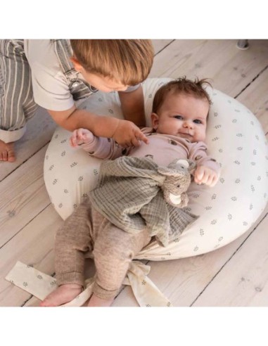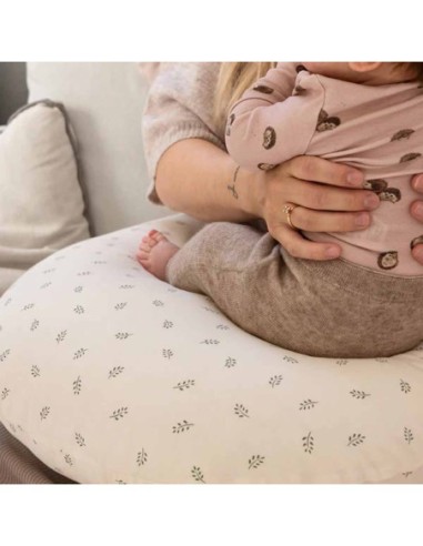 Cuscino per l'allattamento in cotone biologico certificato e imbottito con fibre di kapok termoregolanti.