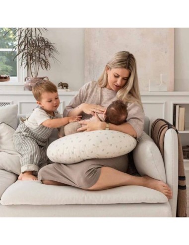 Il cuscino per l'allattamento non serve solo per l'alimentazione. Può essere utilizzato anche come seggiolino nei primi mesi di vita, per allenare i muscoli della schiena e del collo o anche come cuscino decorativo sul divano.