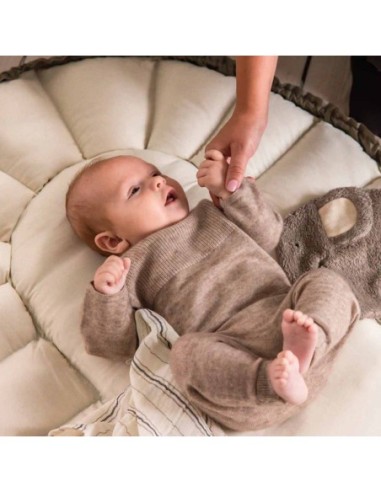 Tenete il vostro bambino al sicuro nel morbidissimo nido che si trasforma in un trasportino quando siete in viaggio e in un grande tappeto da gioco quando si staccano i lati.