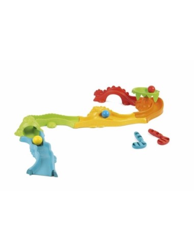 Include 11 pezzi: 6 parti per la pista, 3 palline colorate e 2 mazze da golf dedicate ai più piccoli, ideali per favorire la precisione e lo sviluppo della motricità