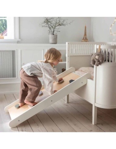 Per creare sfide per il vostro bambino, attaccate la tavola per arrampicata e scivolo al letto Sebra o al triangolo per arrampicata Sebra. È perfetta per rendere più emozionante la salita e la discesa dal letto e può diventare rapidamente parte di un percorso di attività.