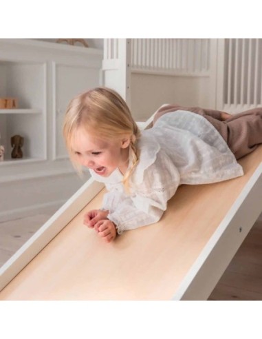 La tavola può essere utilizzata come parete da arrampicata o come scivolo: a voi la scelta! La funzione cambia smontando i lati e capovolgendo la tavola, rendendo il gioco più flessibile e divertente.