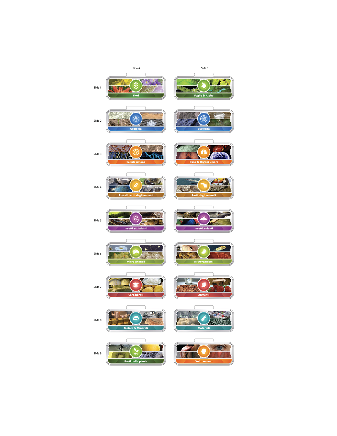 - 9 vetrini illustrati fronte-retro: per scoprire grazie a video e immagini firmati BBC Learning 18 categorie.