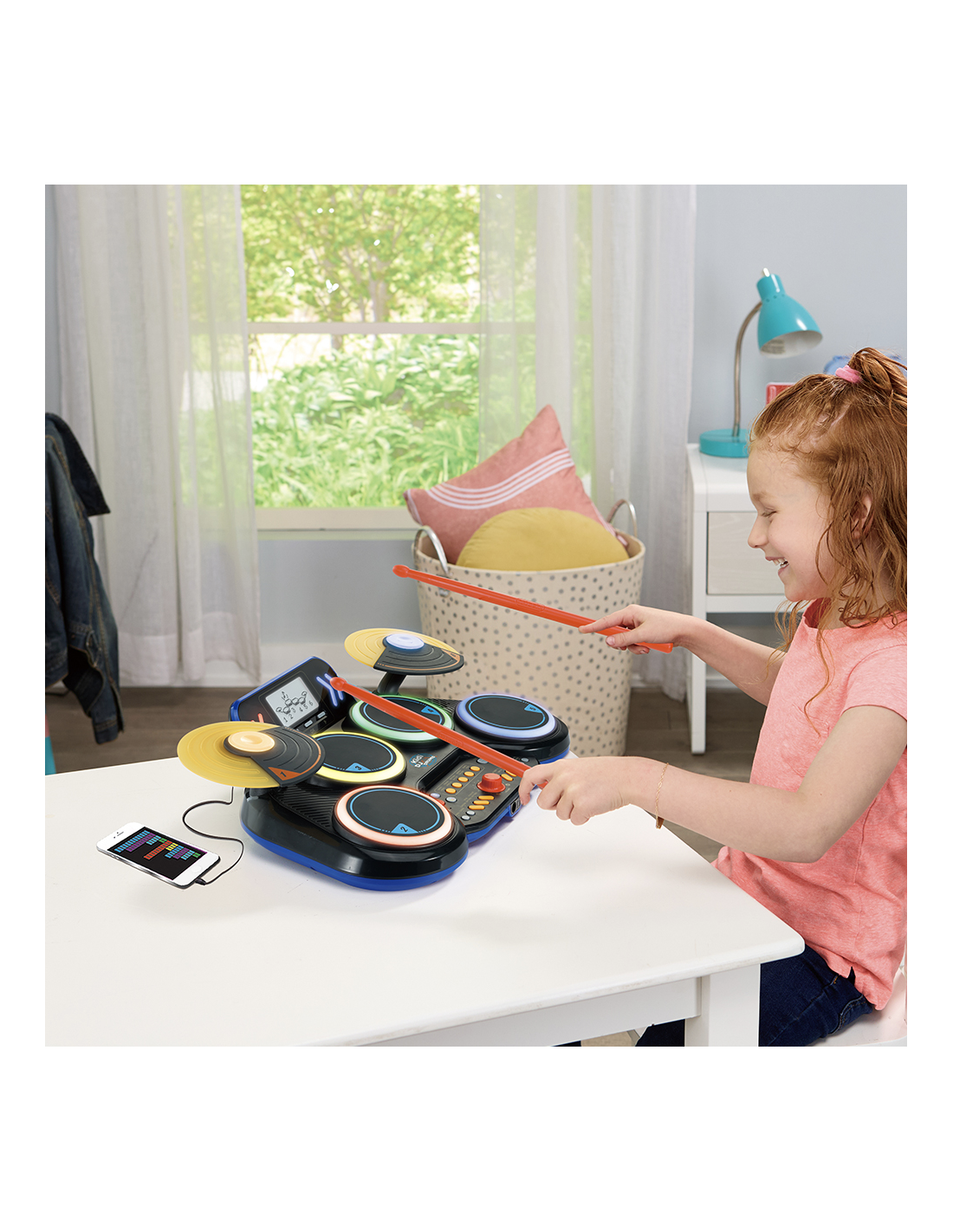 - Tanti brani e melodie integrati, 4 pad luminosi, 2 piatti e una zona di controllo per giocare e mixare composizioni musicali. Colpendo le diverse zone si attivano suoni come una vera batteria con tanti effetti luminosi!